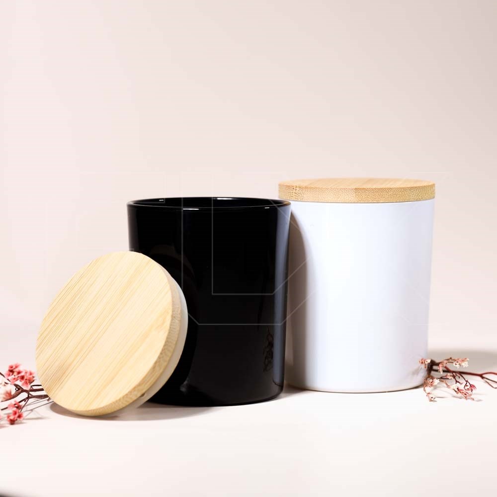 Глянцевая черная баночка для свечей, бамбуковая крышка, 170 мл