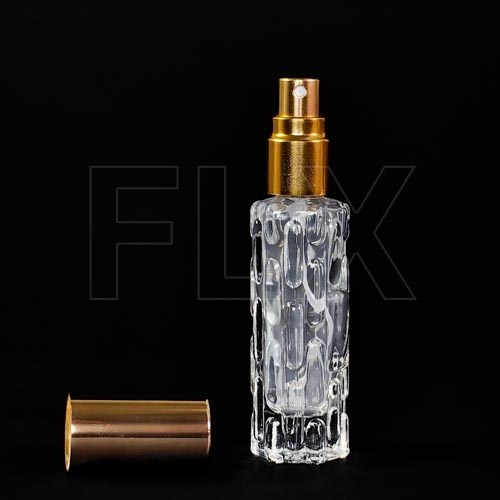 Прозрачное стекло позволяет легко контролировать уровень оставшейся жидкости, что удобно для пользователей, ценящих свои ароматы. Черная крышка надежно закрывает атомайзер, предотвращая утечки и испарение содержимого, а также придаёт ему современный вид.