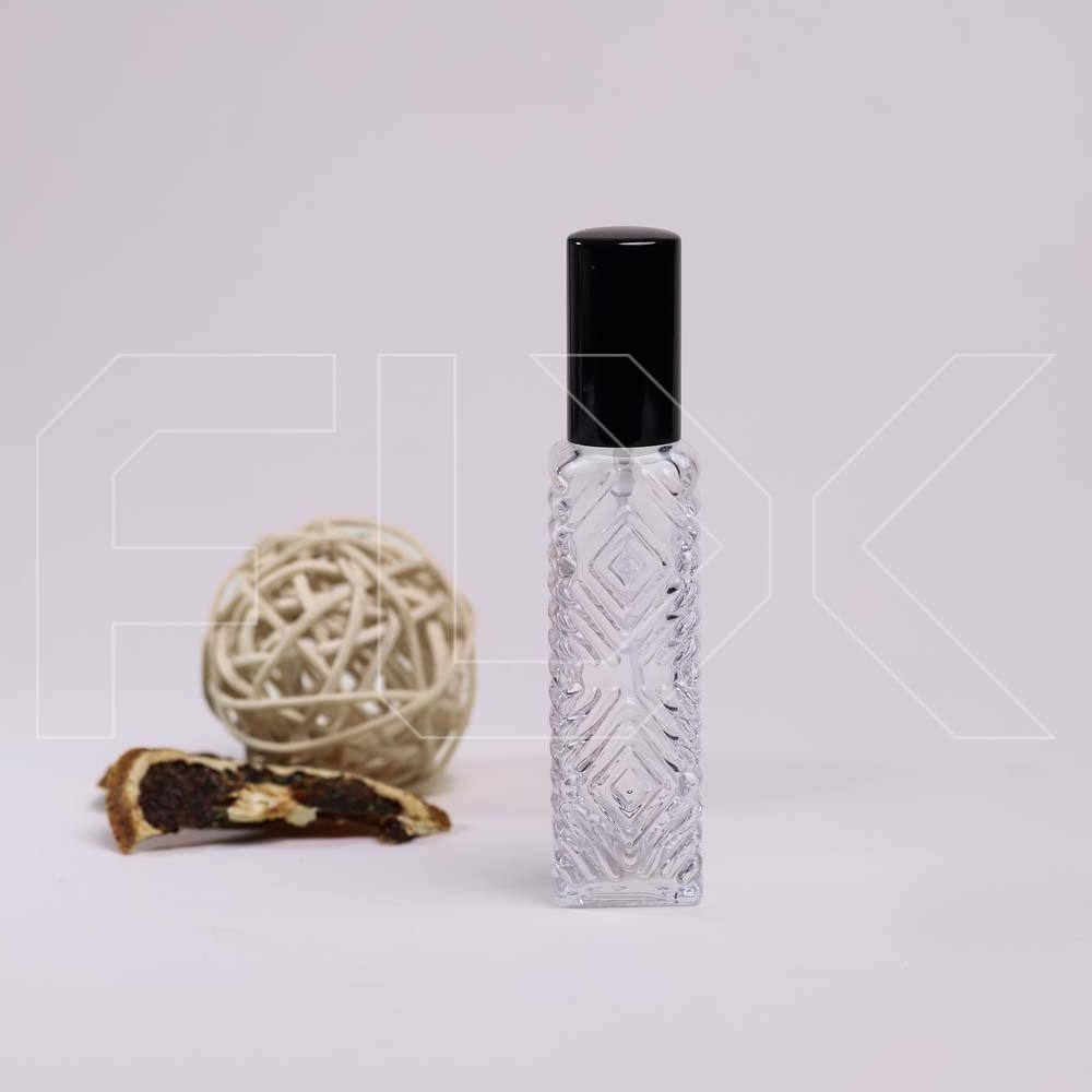 Прозрачное стекло позволяет легко контролировать уровень оставшейся жидкости, что удобно для пользователей, ценящих свои ароматы. Черная крышка надежно закрывает атомайзер, предотвращая утечки и испарение содержимого, а также придаёт ему современный вид.
