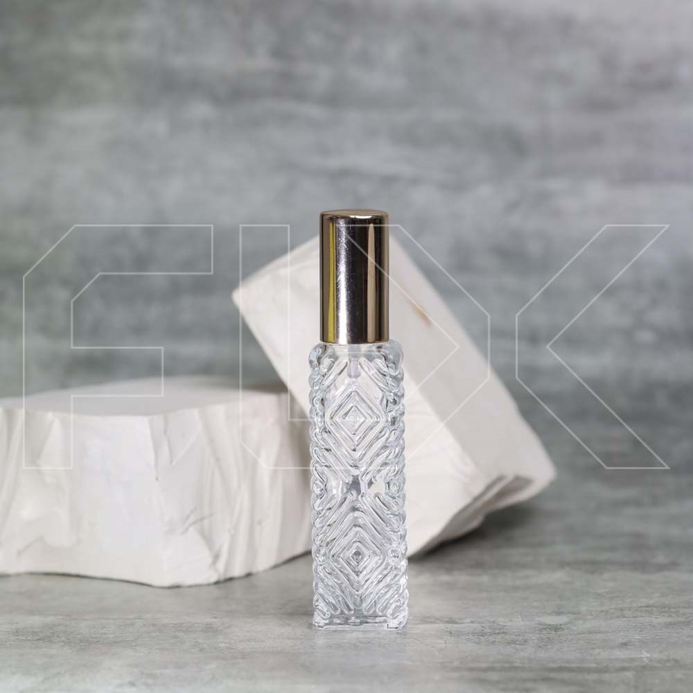 Атомайзер объемом 12 мл, выполненный из узорного стекла с металлической крышкой, представляет собой компактный и стильный аксессуар для хранения духов. Уникальный узор на стеклянной поверхности придаёт ему оригинальность и элегантный вид, что делает его отличным дополнением к любой косметической коллекции.