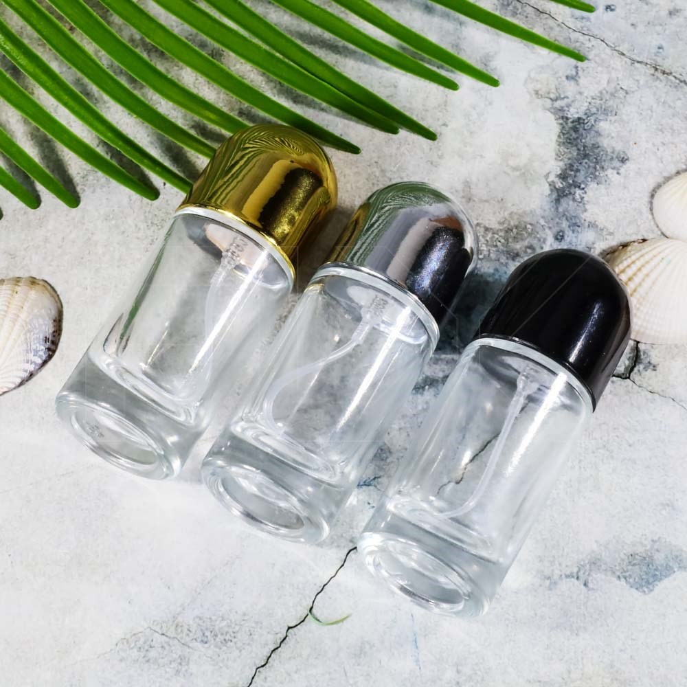 Прозрачное стекло позволяет легко контролировать уровень оставшейся жидкости, что удобно для пользователей, ценящих свои ароматы. Черная крышка надежно закрывает атомайзер, предотвращая утечки и испарение содержимого, а также придаёт ему современный вид.