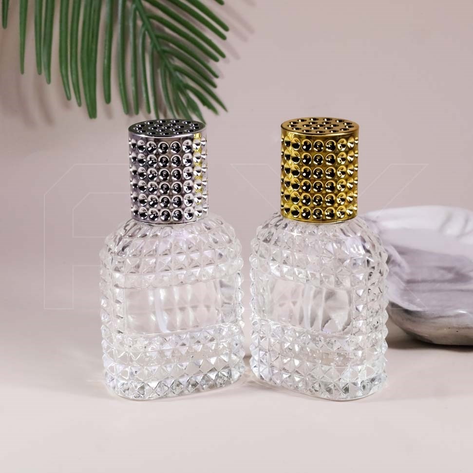 Объем: +-2мл. Атомайзер объемом 26 мл выполнен из узорного стекла, что придает ему оригинальный и привлекательный вид. Уникальный узор на поверхности добавляет эстетичности и делает этот аксессуар интересным элементом любой косметической коллекции. Прозрачное стекло позволяет легко контролировать уровень оставшейся жидкости, что удобно для пользователей, регулярно использующих свои ароматы.
