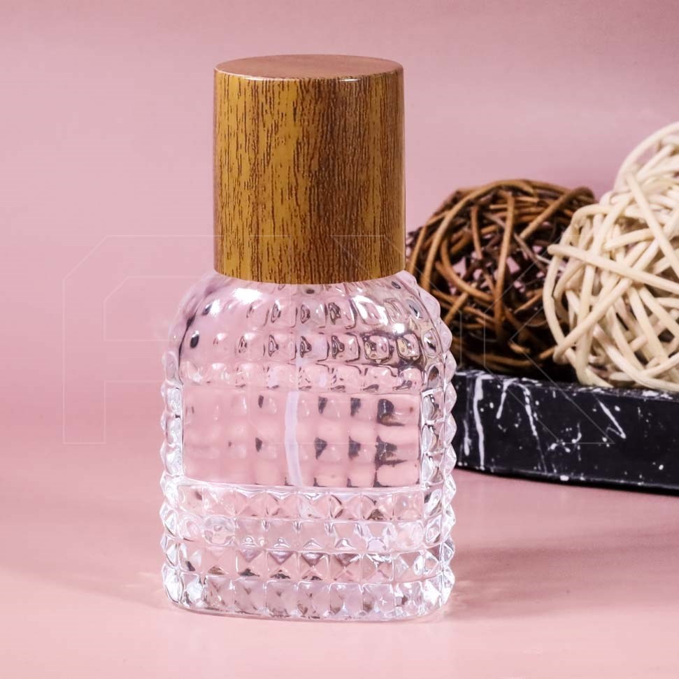 Объем: +-2мл. Атомайзер объемом 28 мл изготовлен из узорного стекла с светлой крышкой, выполненной в имитации дерева, что придает ему стильный и современный вид. Уникальный узор на стекле добавляет изысканности, позволяя не только хранить парфюмерию, но и демонстрировать её с эстетикой.