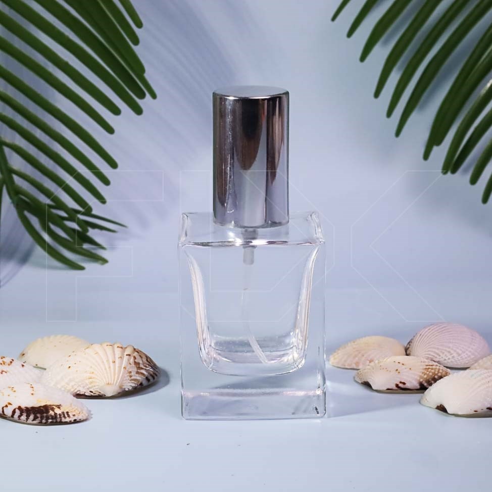 Объем: +-2мл. Атомайзер объемом 30 мл выполнен в квадратной форме из качественного стекла и оснащен серебристой металлической крышкой, что придает ему современный и стильный вид. Уникальный квадратный дизайн не только эстетичен, но и обеспечивает стабильность, позволяя удобно размещать атомайзер на туалетном столике или в косметичке. Прозрачное стекло позволяет контролировать уровень оставшейся жидкости, что удобно для пользователей, активно использующих свои ароматы.