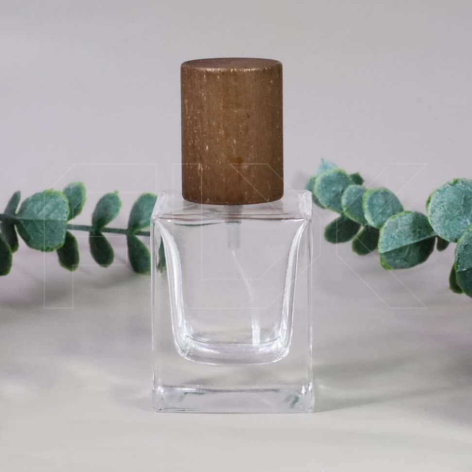Объем: +-2,5мл. Атомайзер объемом 52 мл в прямоугольной форме, выполненный из стекла и оснащенный круглой деревянной крышкой, представляет собой элегантный и оригинальный аксессуар для хранения духов. Его современный и лаконичный дизайн делает его идеальным дополнением для любого туалетного столика или косметички, подчеркивая вкус владельца.