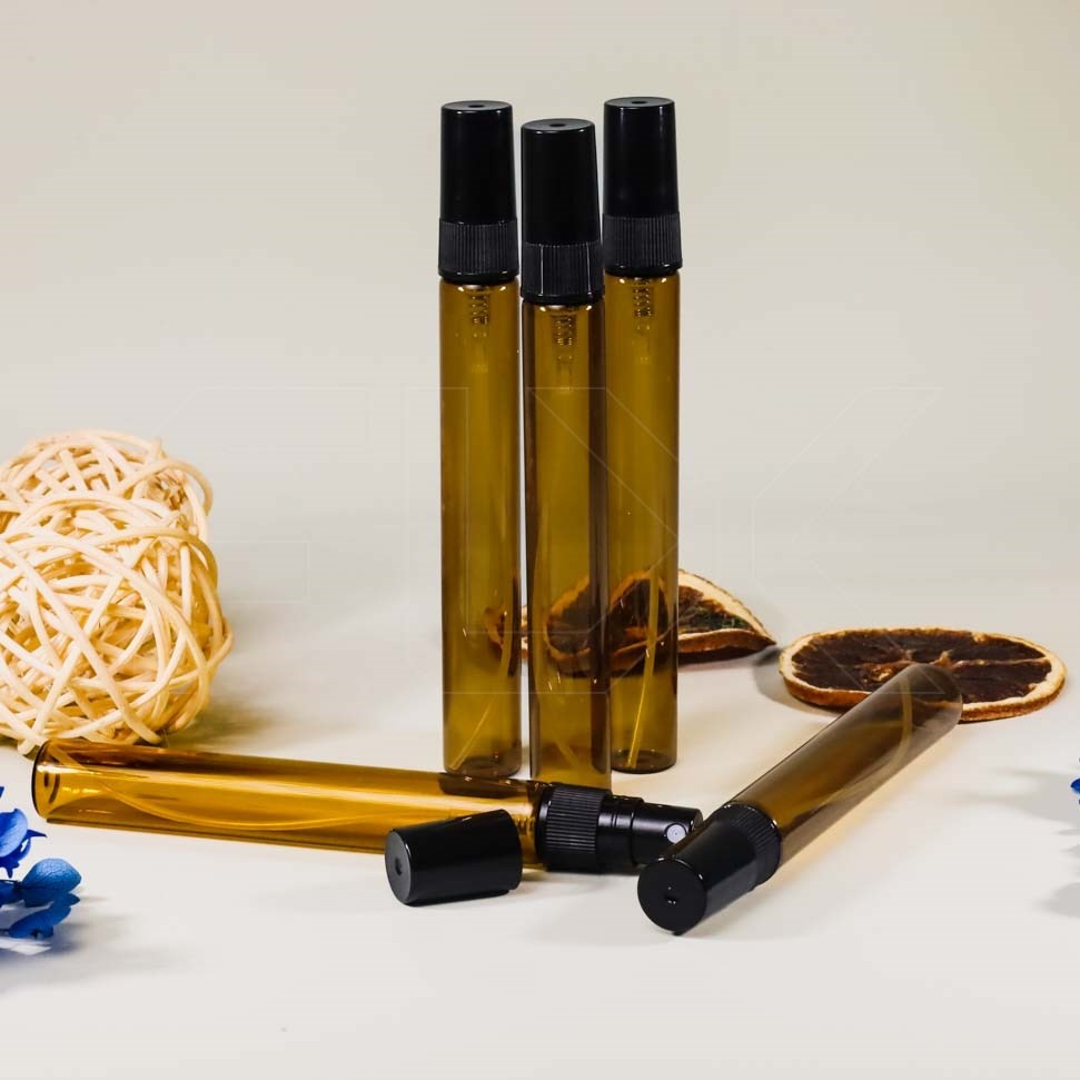 Атомайзер-карандаш 10мл, коричн.стекло, черная пластиковая крышка
