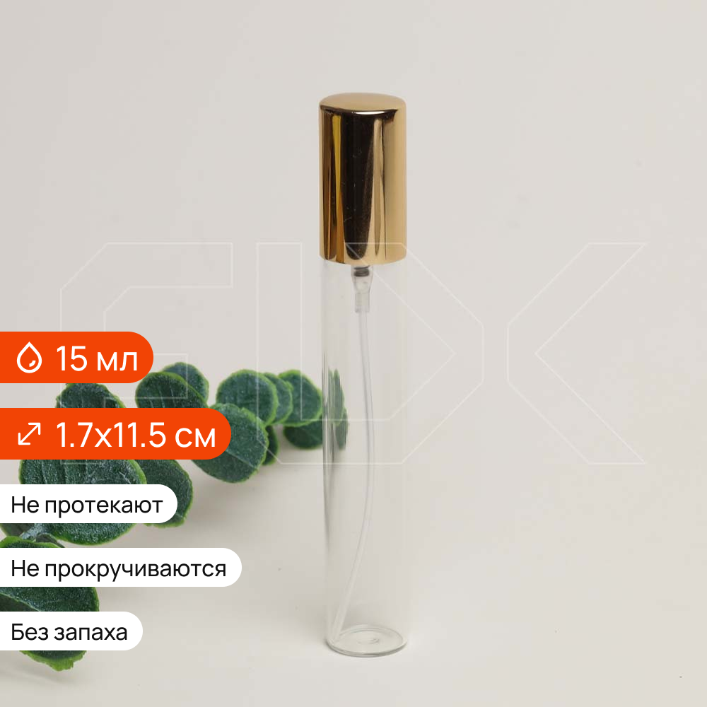 Атомайзер-карандаш 15мл, прозрачное стекло, крышка металл, золотой цвет