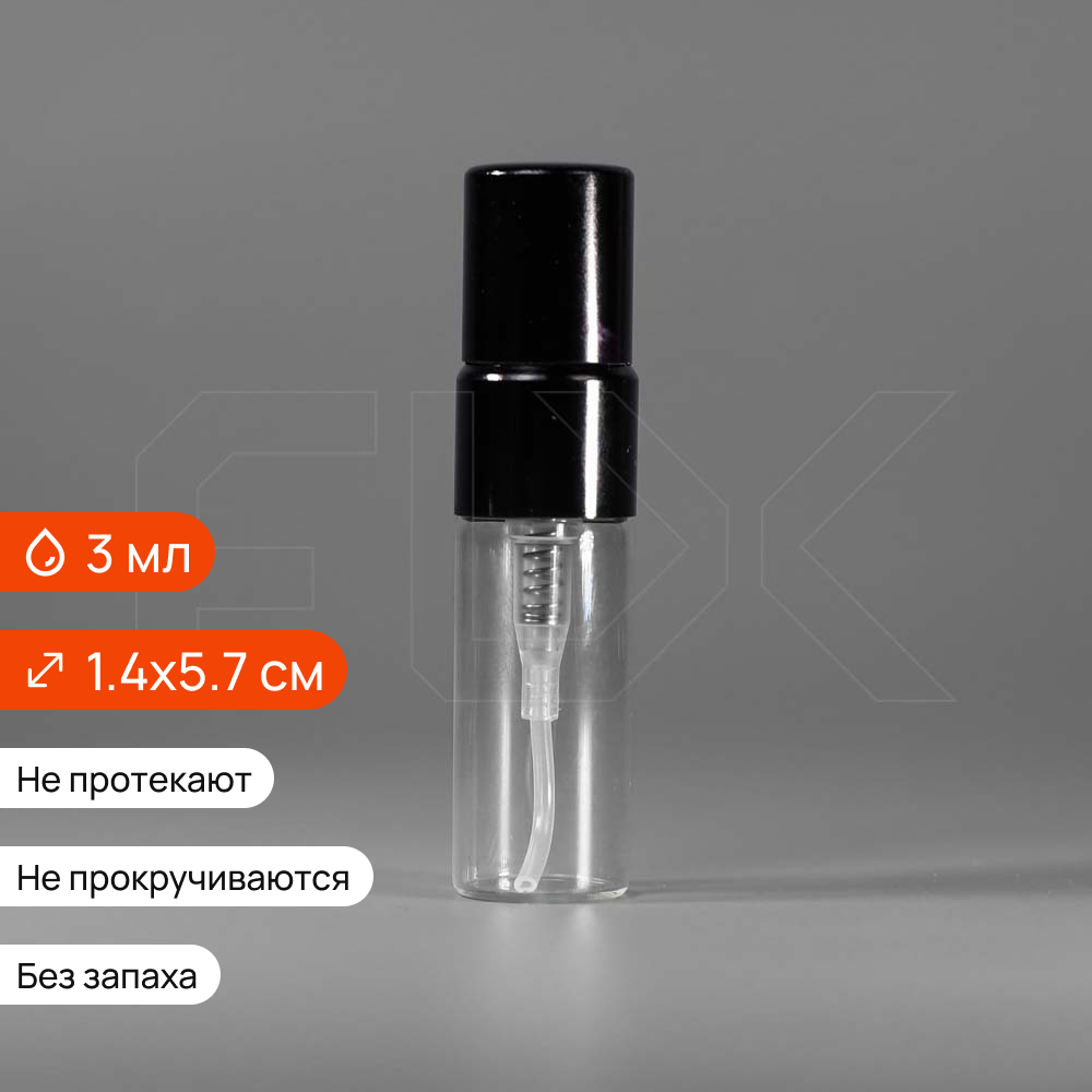 Атомайзер-карандаш 3мл, прозрачное стекло, черная металлическая крышка