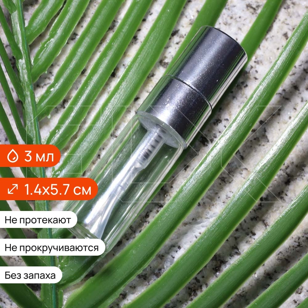 Атомайзер-карандаш 3мл, прозрачное стекло, серебристая металлическая крышка