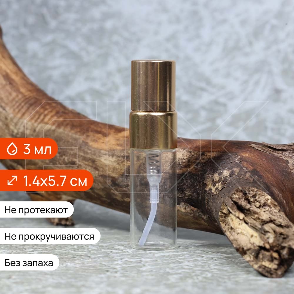 Атомайзер-карандаш 3мл, прозрачное стекло, золотая металлическая крышка