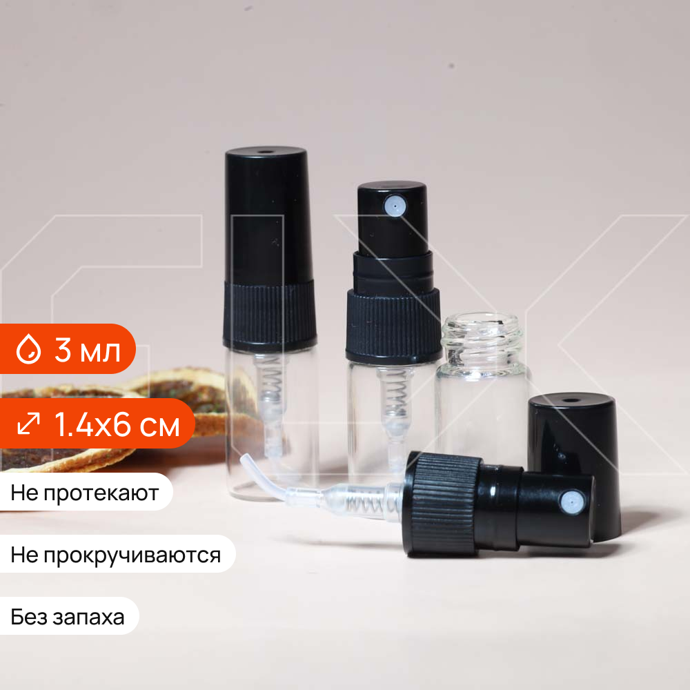 Атомайзер-карандаш 3мл с силиконовой прокладкой, прозрачное стекло, пластиковая крышка