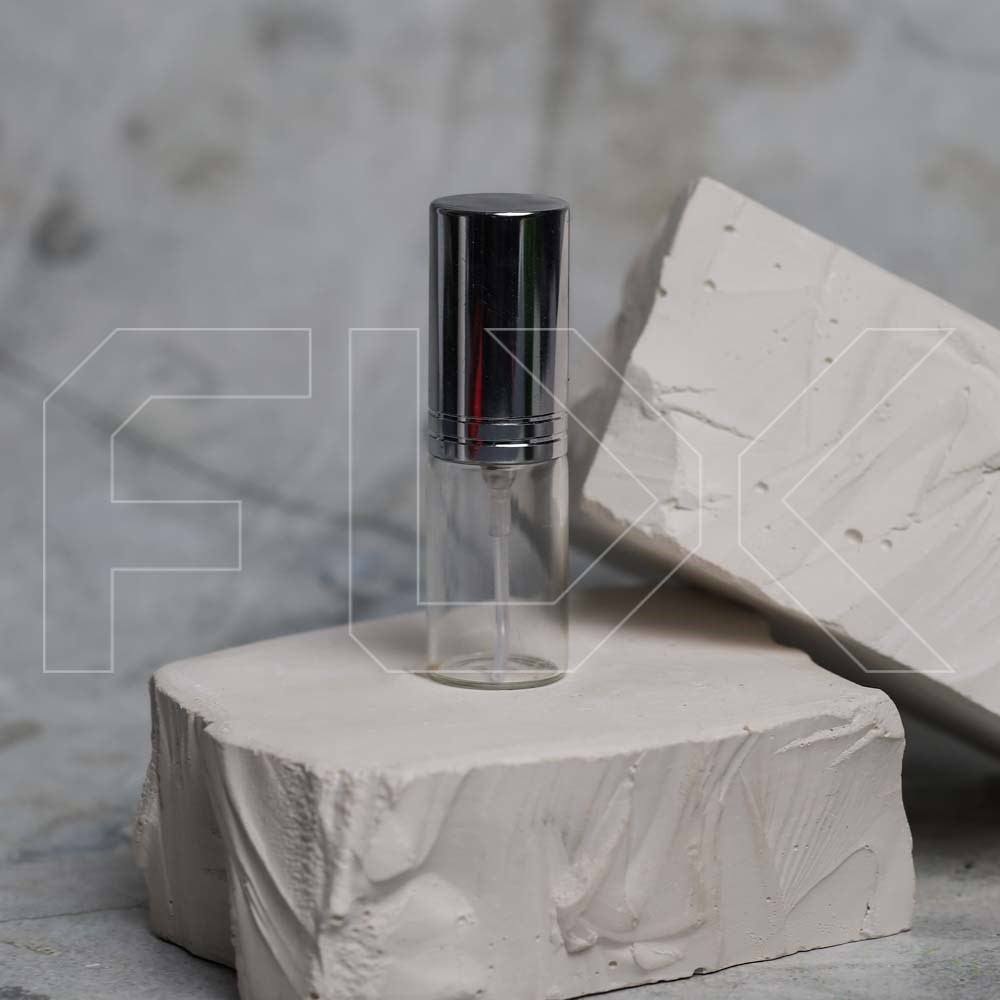 Атомайзер-карандаш 5мл, прозрачное стекло, металлическая крышка с насечками, серебристый цвет