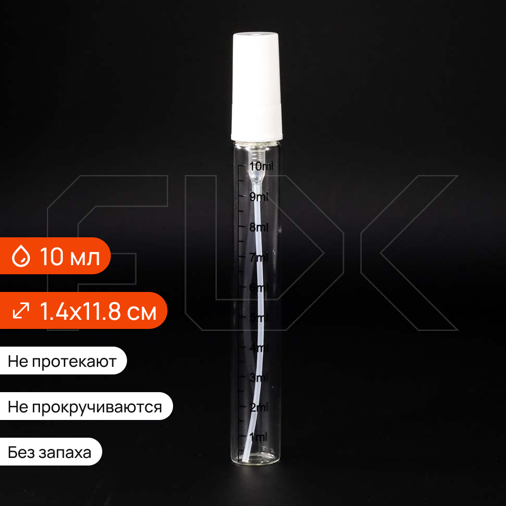Атомайзер со шкалой 10мл, спрей, прозр.стекло, белая крышка (кратно 5)