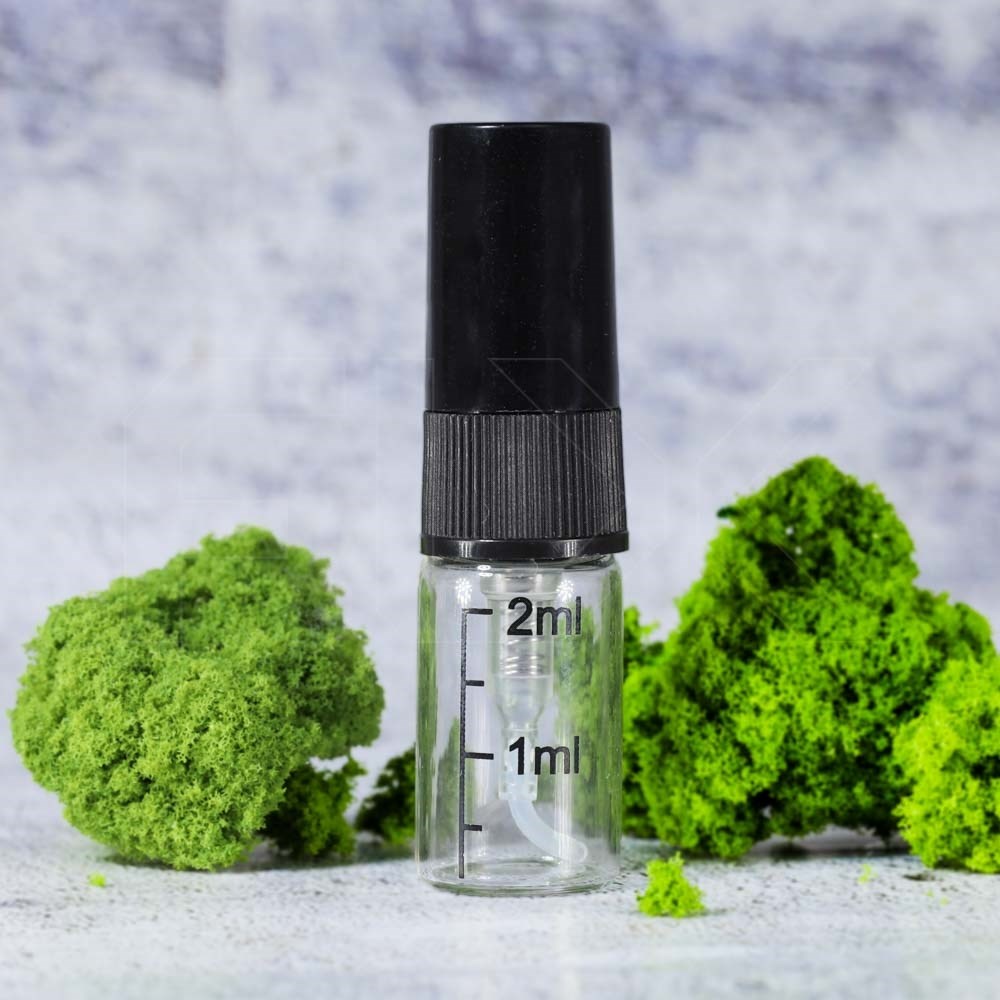 Атомайзер со шкалой 2мл, спрей, прозр.стекло, черная крышка (кратно 5)