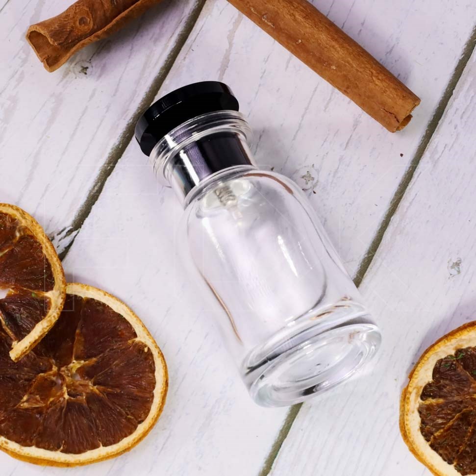 Черная крышка из дерева добавляет элемент естественности и делает атомайзер более привлекательным. Она надежно закрывает стакан, предотвращая утечки и защищая содержимое от испарения, что гарантирует сохранение аромата на длительное время. Совершенное сочетание стеклянного корпуса и деревянной крышки создает гармоничный и современный облик.