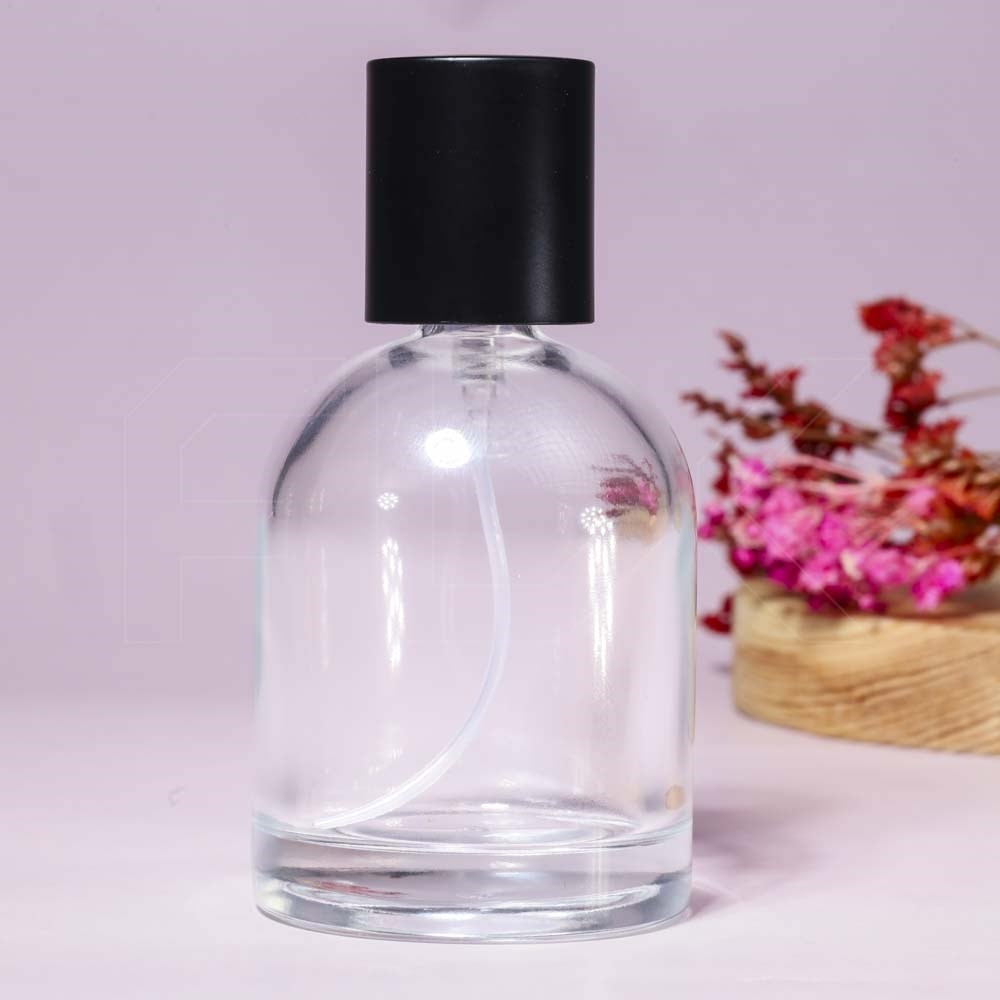 Атомайзер-защелка, прозрачное стекло, 50 мл, черная крышка/пластик