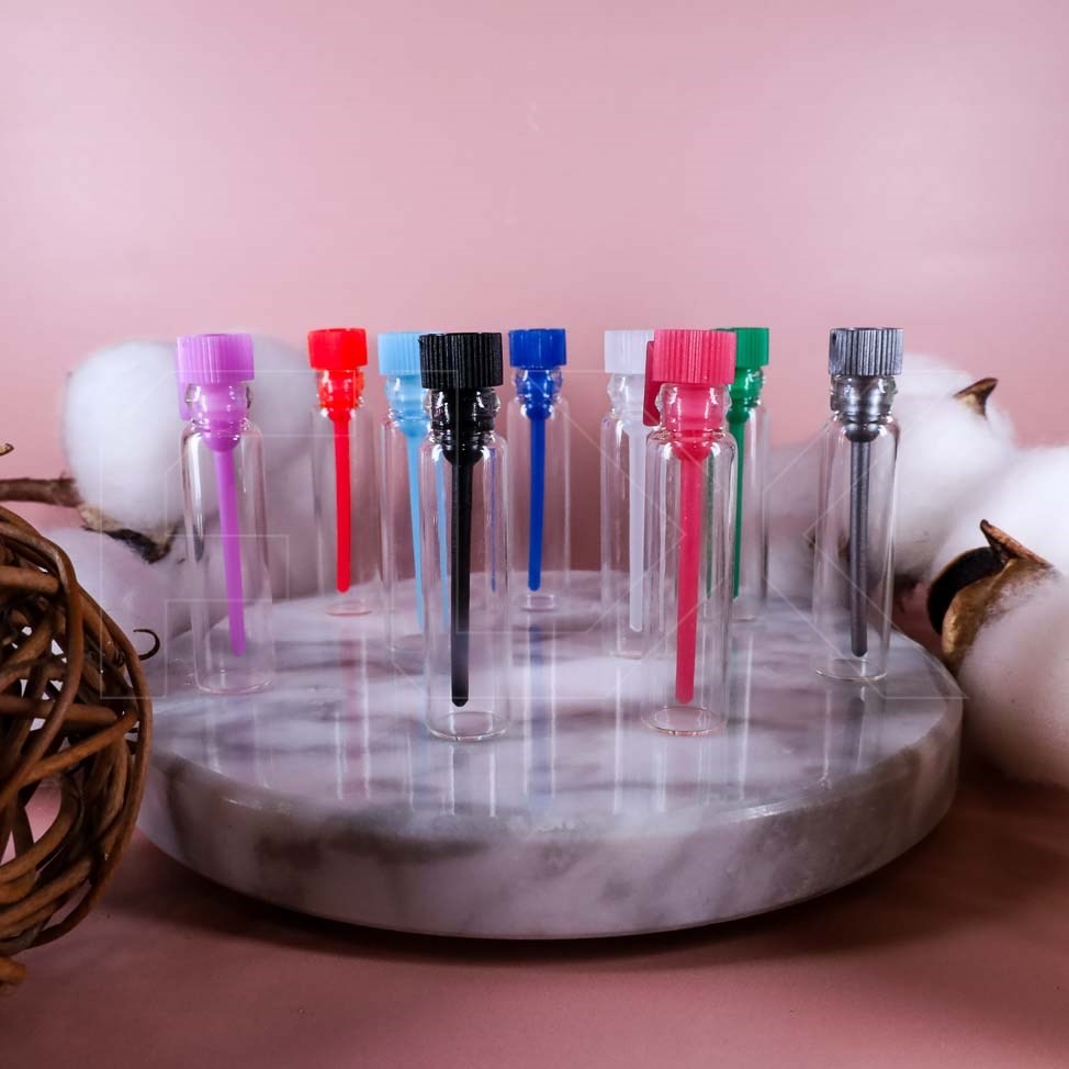 Пробник фиолка для парфюмерии объемом 1 мл изготовлена из прозрачного стекла, что позволяет легко контролировать уровень содержимого. Разнообразие доступных цветов делает каждую фиолку уникальной и добавляет элемент индивидуальности, что особенно привлекательно для пользователей, желающих выделиться среди стандартных аксессуаров. Маленький размер делает её идеальным вариантом для хранения пробников парфюмерии или косметических средств.