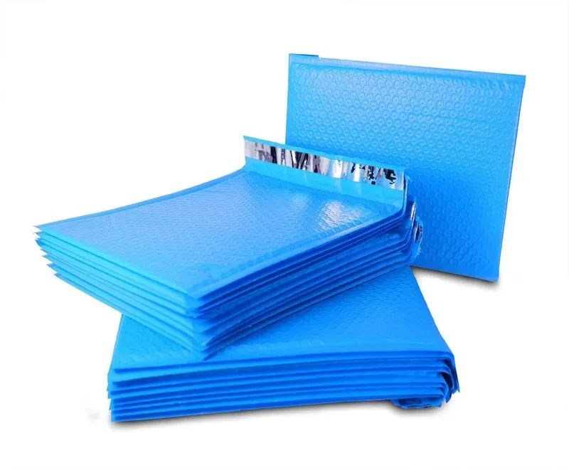 Эти голубые конверты предназначены для упаковки разнообразных товаров. Они идеально подходят для отправки посылок почтой или курьерскими службами, а также для хранения товаров на складе.
