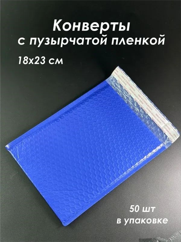 Голубые пузырьковые конверты 18x23 см (продаются кратно 50 шт.):