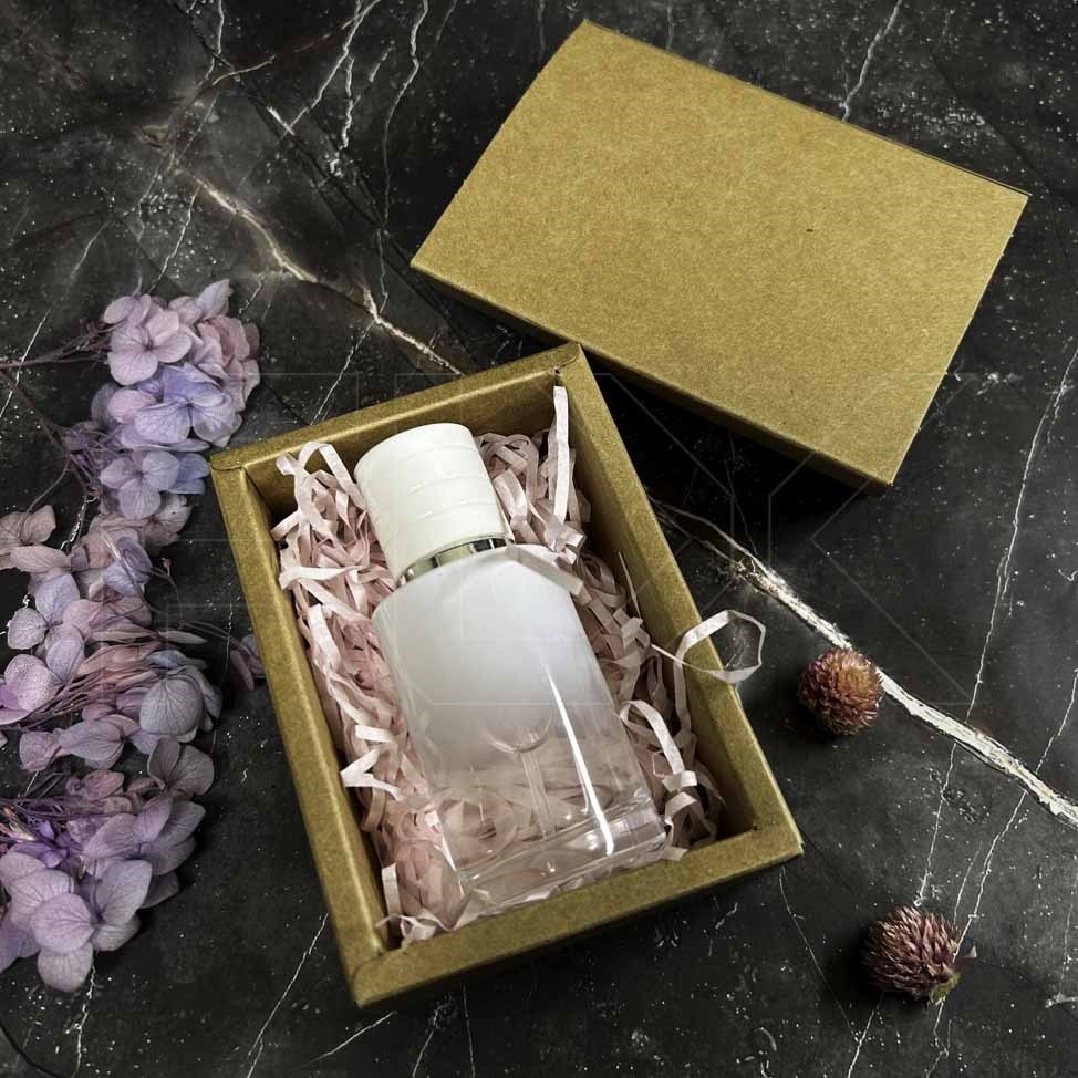 Дизайн: Коробка может быть оформлена в соответствии с фирменным стилем бренда, включая логотип на верхней части коробки или изысканные рисунки по бокам. Дизайн часто бывает минималистичным, чтобы подчеркнуть роскошь содержимого.