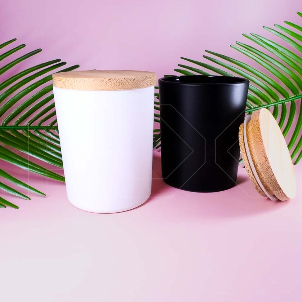 Матовая белая баночка для свечей, бамбуковая крышка, 150 мл