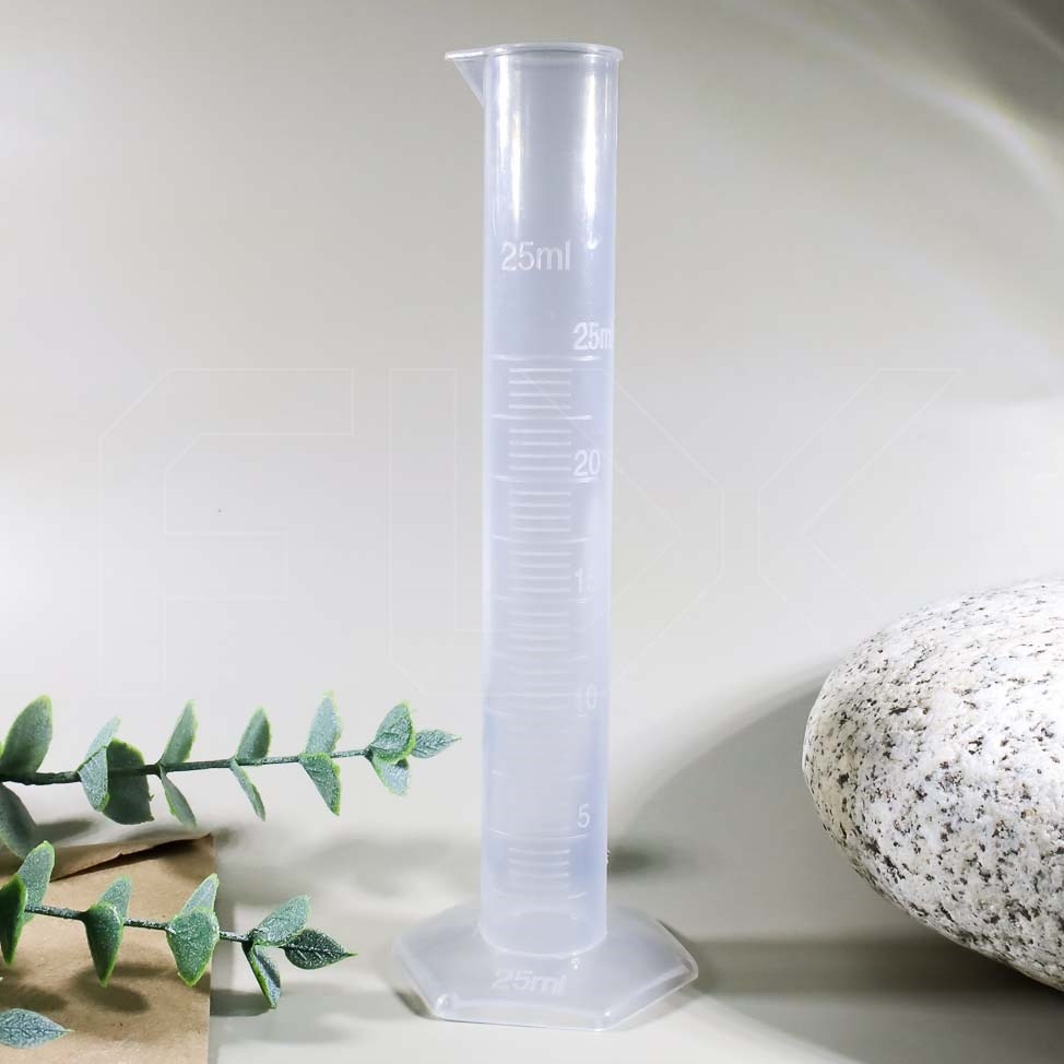 Мензурка на 25 мл из пластмассы, предназначенная для использования в парфюмерии, представляет собой измерительный инструмент, который используется для точного отмеривания жидкости при создании парфюмерных композиций.