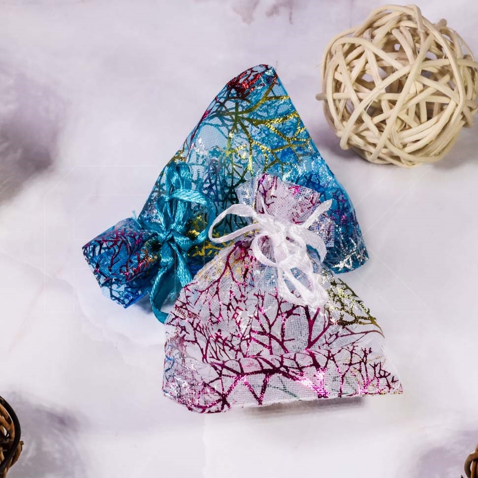 Мешочки обеспечивают прекрасный вид содержимому, создавая интригующее предвкушение подарка, и закрываются с помощью шнуров, что облегчает их использование и обеспечивает безопасность запакованных предметов. Органза придает мешочкам легкость и невесомость, благодаря чему они выглядят изящно и воздушно.