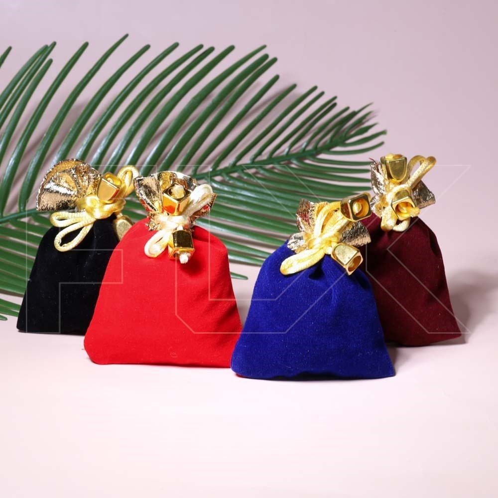 Упаковка оснащена шнурком или лентой, которые позволяют легко и надежно закрыть мешочек, сохраняя содержимое внутри и придающие завершенный вид упаковке. Ассортимент цветов может варьироваться, предлагая выбор от традиционных темных оттенков до более ярких и насыщенных цветов с декоративными элементами, что делает упаковку еще более привлекательной.