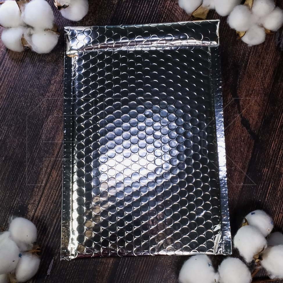 Металлизированные конверты с пузырчатой пленкой, 18х26, серебристые (кратно 50)