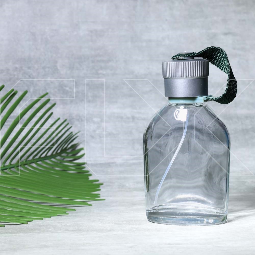 Атомайзер, прозрачное стекло, серая крышка, 100мл
