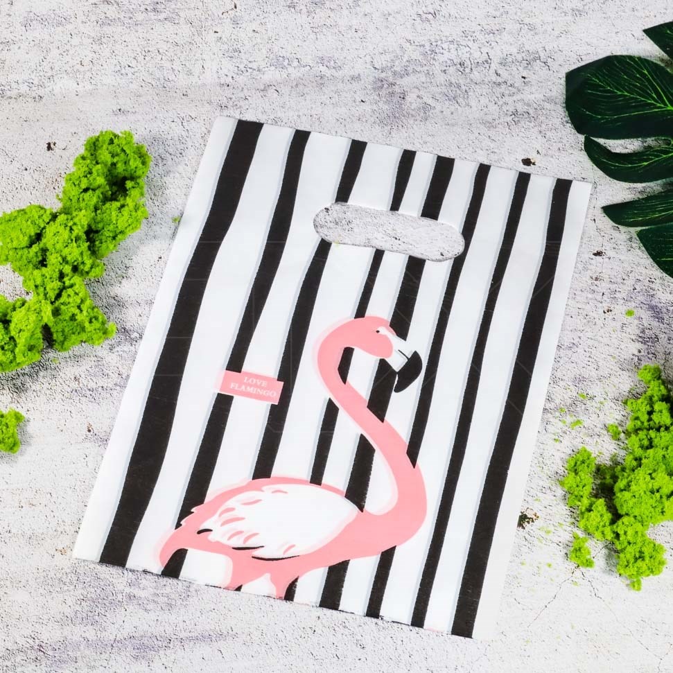 Каждый пакет украшен стильным и современным принтом с изображением фламинго, добавляющим упаковке изысканности и уникального флоридского шарма. Фламинго, как символ красоты и изящества, делает эти пакеты особенным выбором для любого подарка, желая выразить заботу и внимание.