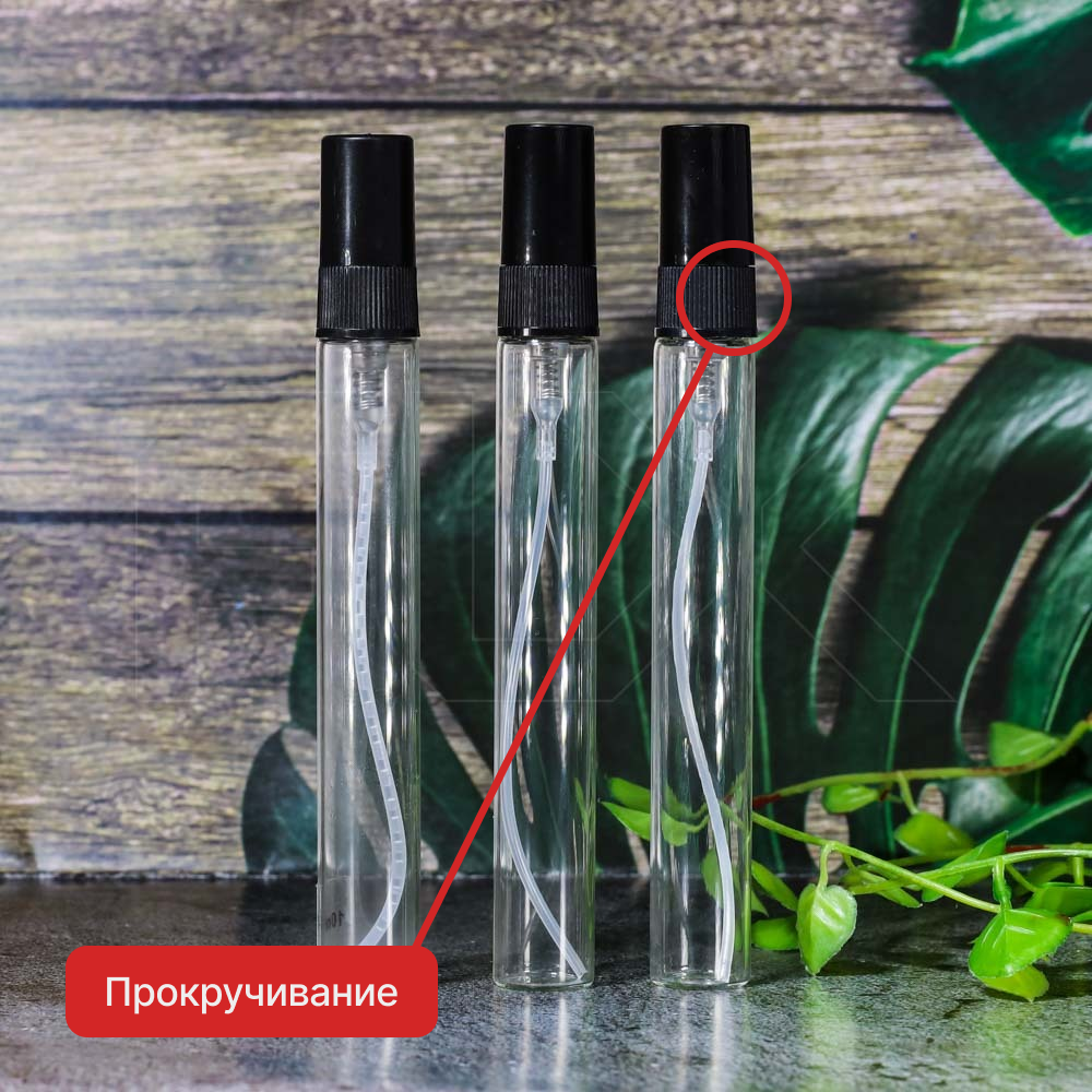 УЦЕНКА-Атомайзер-карандаш 10мл, прозрачное стекло, пластиковая черная крышка (кратно 10)
