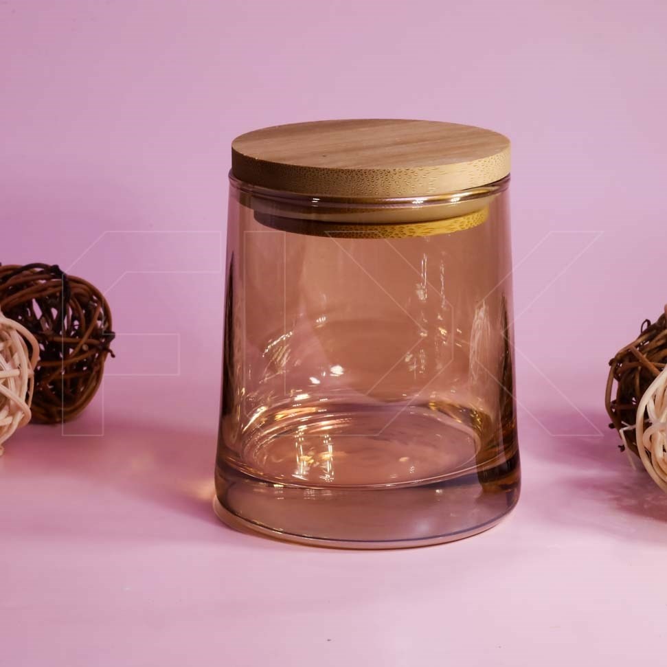 зак_Баночка для свечей, янтарное стекло, бамбуковая крышка, 250 мл